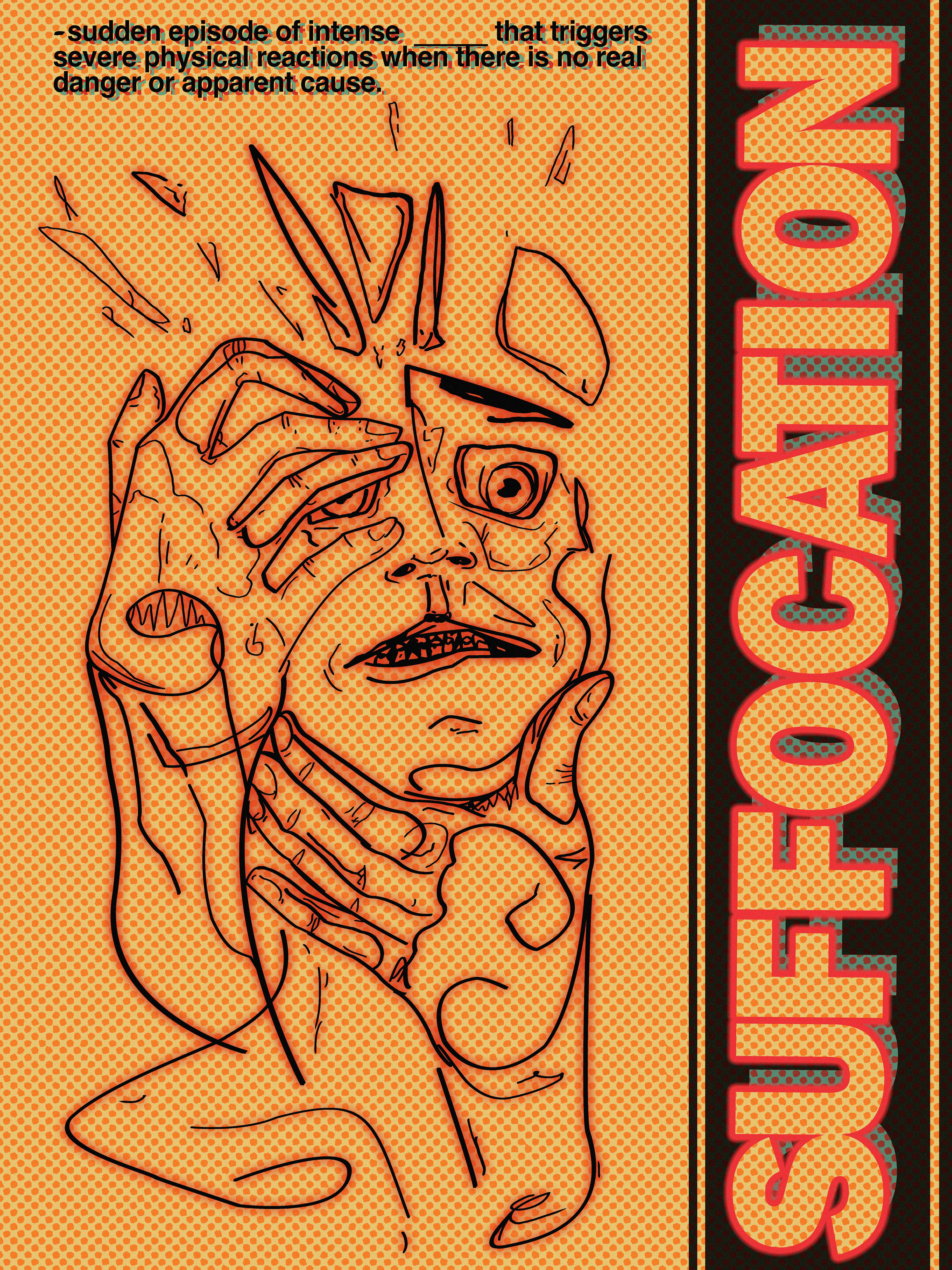 First and only finished design in a cancelled series of posters focusing on several mental and physical afflictions. These designs feature cubist stylings, bold colors and large typographic elements.