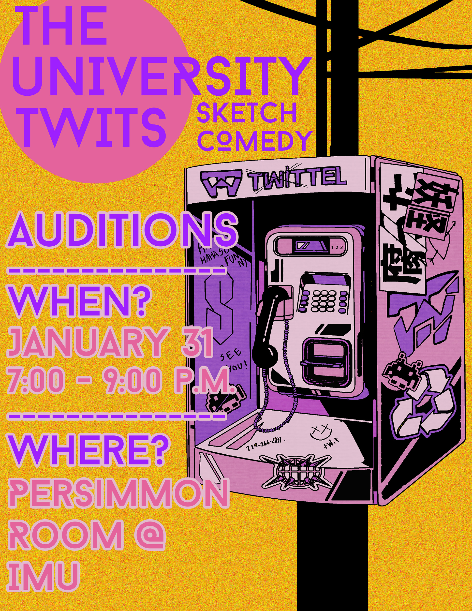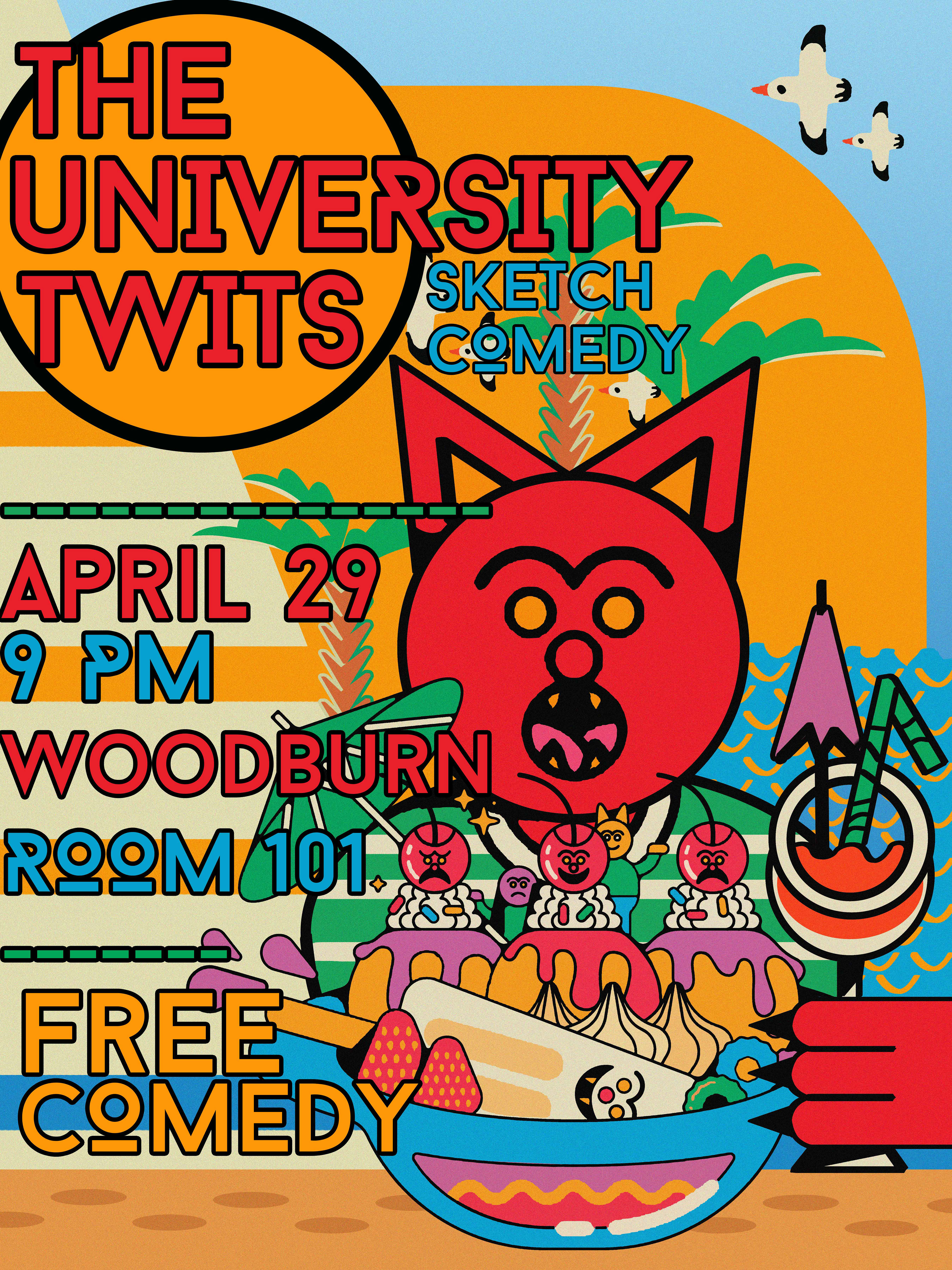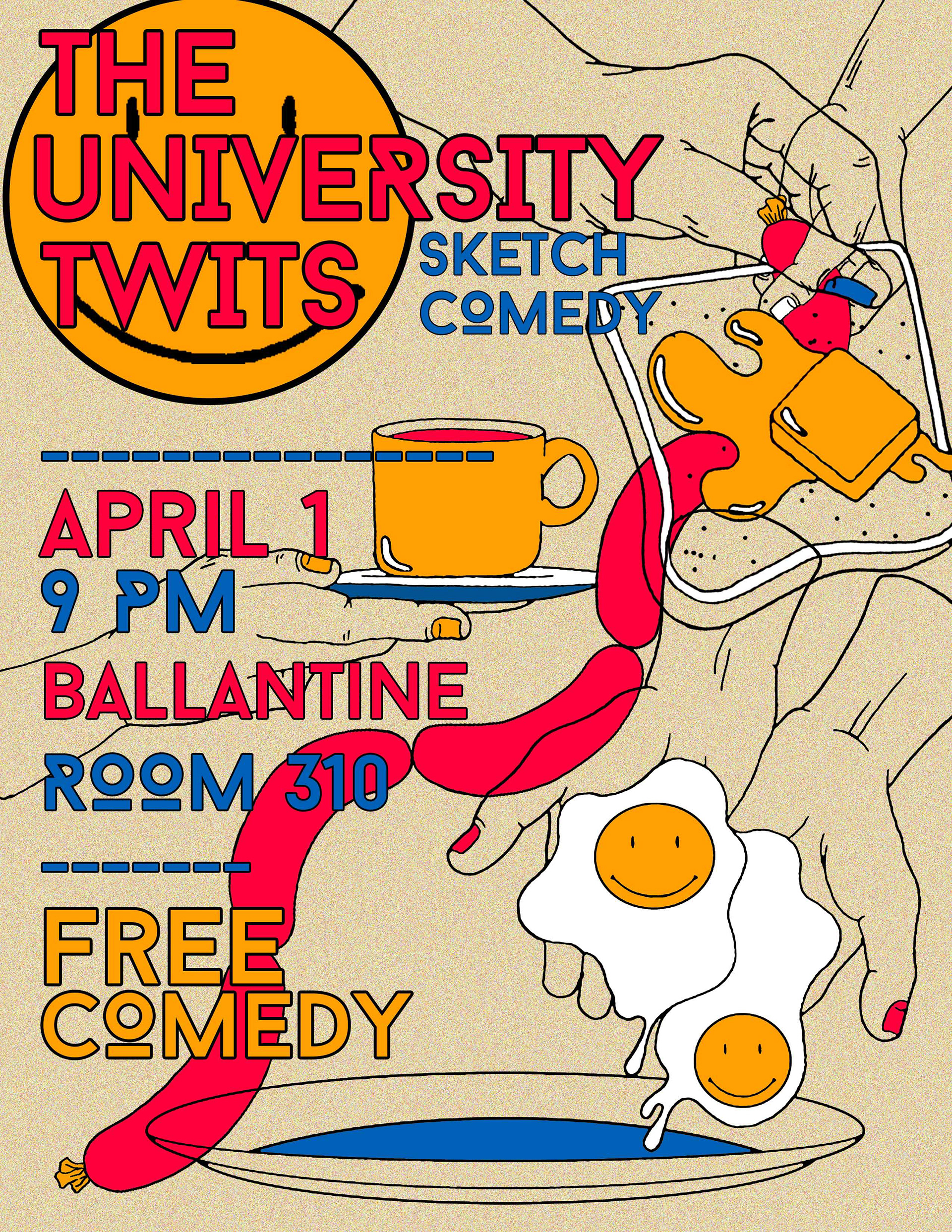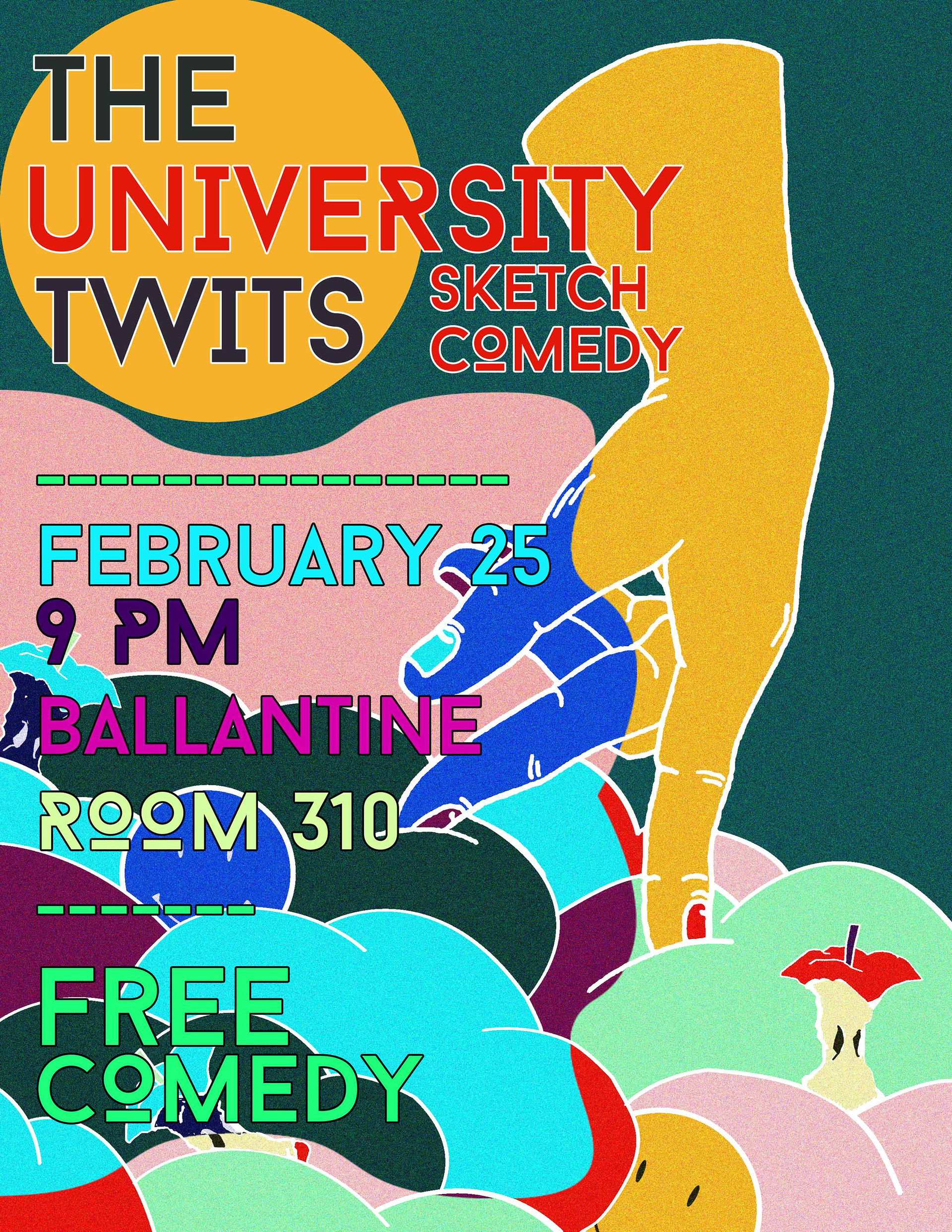 A collection of various posters designed for my college sketch comedy group, "The University tWits." These posters were put up across my university's campus in promotion for the group's upcoming shows and events.
