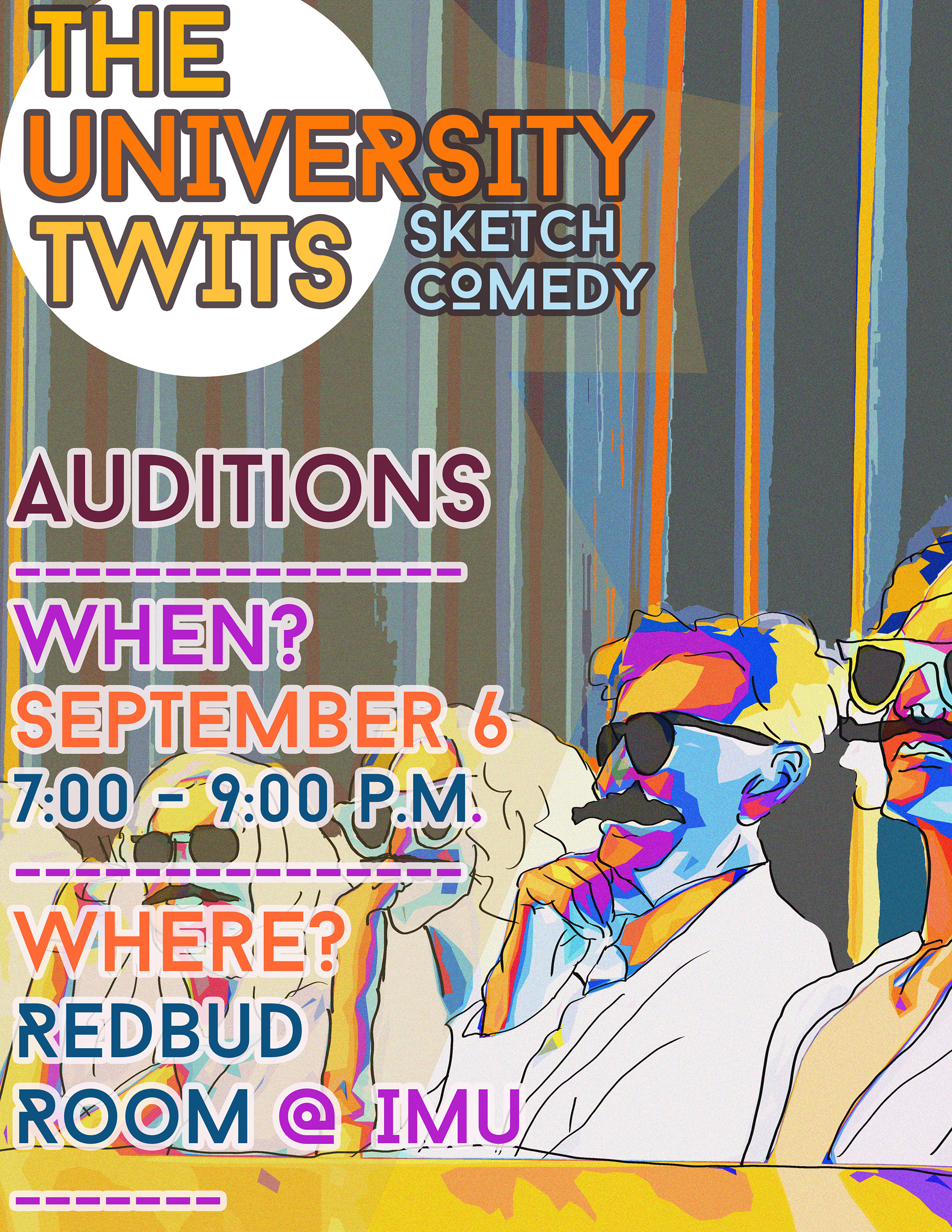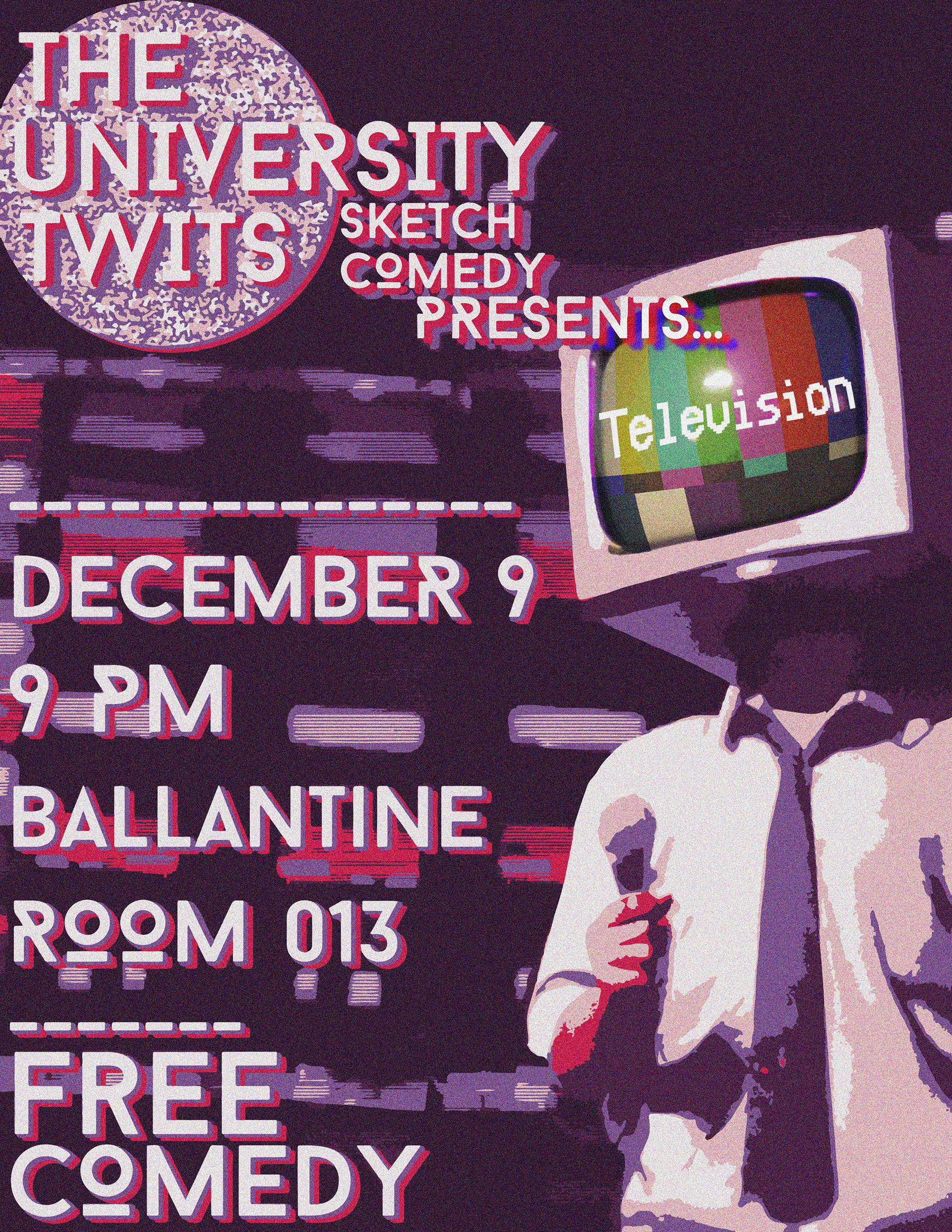 The final batch of posters designed for my college sketch comedy group, "The University tWits." These posters were displayed across the university campus in promotion for the group's upcoming shows and events.